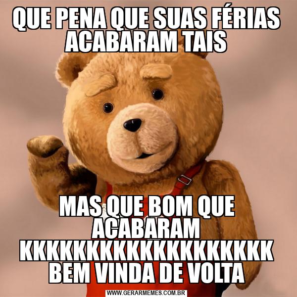 QUE PENA QUE SUAS FÉRIAS ACABARAM TAIS MAS QUE BOM QUE ACABARAM KKKKKKKKKKKKKKKKKKK BEM VINDA DE VOLTA