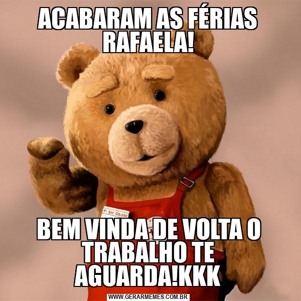 ACABARAM AS FÉRIAS RAFAELA! BEM VINDA DE VOLTA O TRABALHO TE AGUARDA!KKK