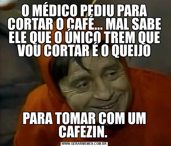 O MÉDICO PEDIU PARA CORTAR O CAFÉ... MAL SABE ELE QUE O ÚNICO TREM QUE VOU CORTAR É O QUEIJO PARA TOMAR COM UM CAFEZIN.