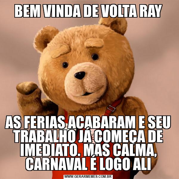 BEM VINDA DE VOLTA RAY AS FERIAS ACABARAM E SEU TRABALHO JÁ COMEÇA DE IMEDIATO. MAS CALMA, CARNAVAL É LOGO ALI
