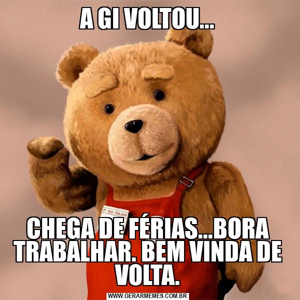 A GI VOLTOU... CHEGA DE FÉRIAS...BORA TRABALHAR. BEM VINDA DE VOLTA.