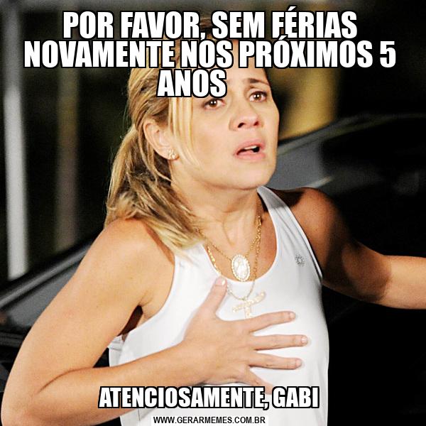 POR FAVOR, SEM FÉRIAS NOVAMENTE NOS PRÓXIMOS 5 ANOS ATENCIOSAMENTE, GABI