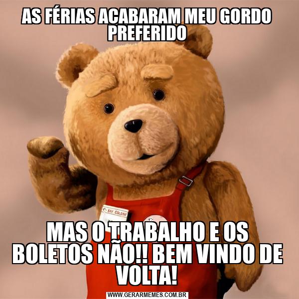 AS FÉRIAS ACABARAM MEU GORDO PREFERIDO MAS O TRABALHO E OS BOLETOS NÃO!! BEM VINDO DE VOLTA!