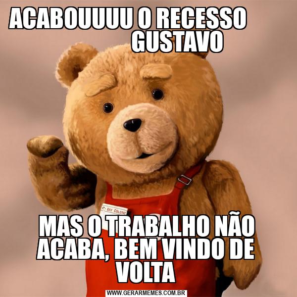 ACABOUUUU O RECESSO GUSTAVO MAS O TRABALHO NÃO ACABA, BEM VINDO DE VOLTA