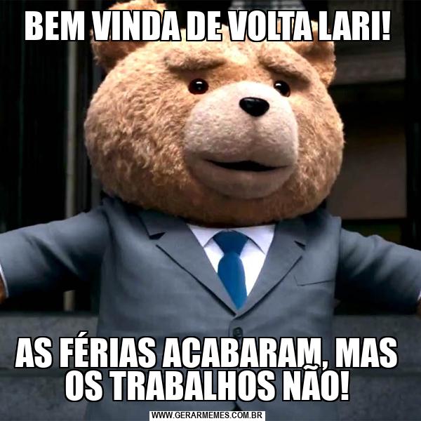 BEM VINDA DE VOLTA LARI! AS FÉRIAS ACABARAM, MAS OS TRABALHOS NÃO!