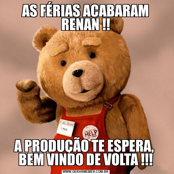 AS FÉRIAS ACABARAM RENAN !! A PRODUÇÃO TE ESPERA, BEM VINDO DE VOLTA !!!