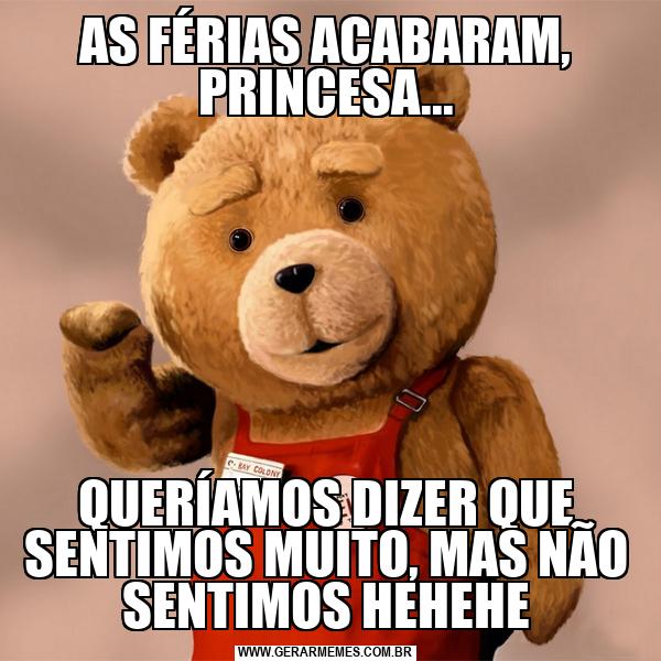 AS FÉRIAS ACABARAM, PRINCESA... QUERÍAMOS DIZER QUE SENTIMOS MUITO, MAS NÃO SENTIMOS HEHEHE