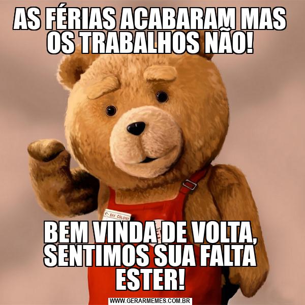 AS FÉRIAS ACABARAM MAS OS TRABALHOS NÃO! BEM VINDA DE VOLTA, SENTIMOS SUA FALTA ESTER!