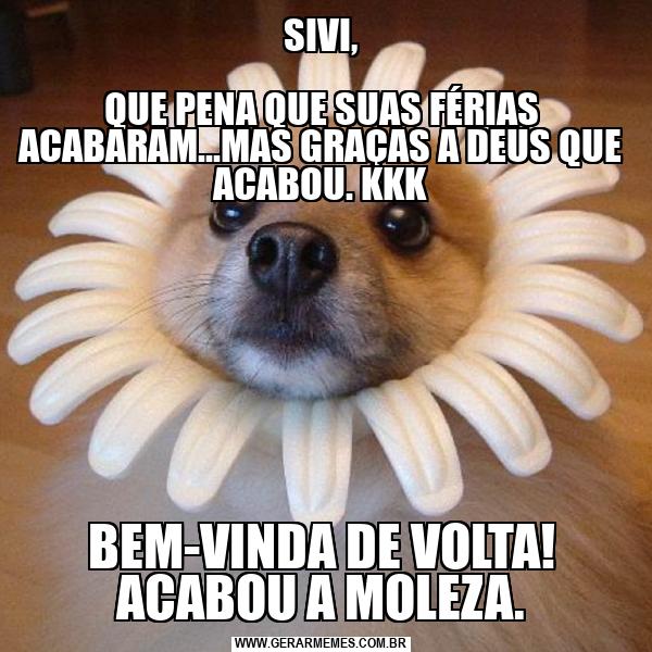 SIVI, QUE PENA QUE SUAS FÉRIAS ACABARAM...MAS GRAÇAS A DEUS QUE ACABOU. KKK BEM-VINDA DE VOLTA! ACABOU A MOLEZA.