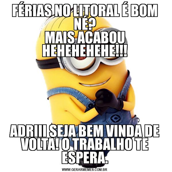 FÉRIAS NO LITORAL É BOM NÉ? MAIS ACABOU HEHEHEHEHE!!! ADRIII SEJA BEM VINDA DE VOLTA! O TRABALHO TE ESPERA.