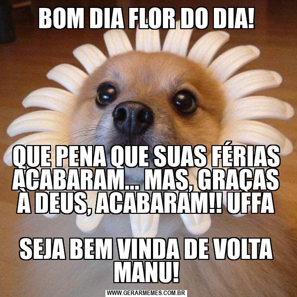 BOM DIA FLOR DO DIA! QUE PENA QUE SUAS FÉRIAS ACABARAM... MAS, GRAÇAS À DEUS, ACABARAM!! UFFA SEJA BEM VINDA DE VOLTA MANU!