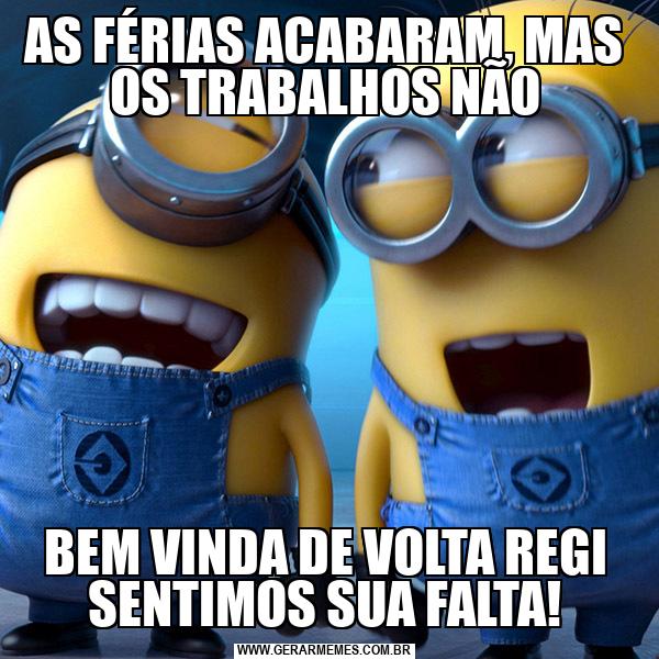 AS FÉRIAS ACABARAM, MAS OS TRABALHOS NÃO BEM VINDA DE VOLTA REGI SENTIMOS SUA FALTA!
