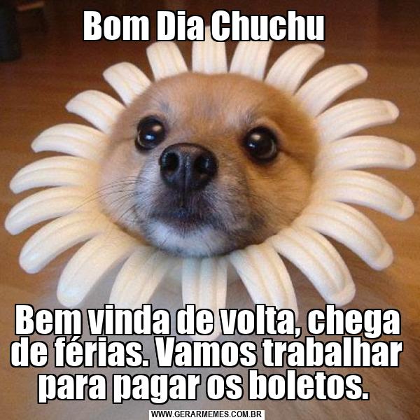 Bom Dia Chuchu Bem vinda de volta, chega de férias. Vamos trabalhar para pagar os boletos.