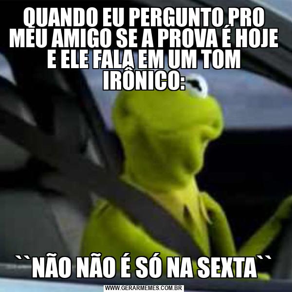 QUANDO EU PERGUNTO PRO MEU AMIGO SE A PROVA É HOJE E ELE FALA EM UM TOM IRÔNICO: ``NÃO NÃO É SÓ NA SEXTA``