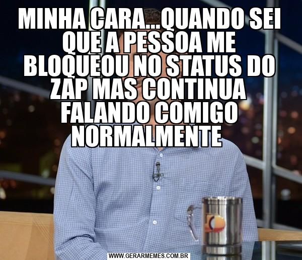 MINHA CARA...QUANDO SEI QUE A PESSOA ME BLOQUEOU NO STATUS DO ZAP MAS CONTINUA FALANDO COMIGO NORMALMENTE