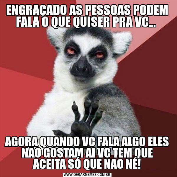 ENGRAÇADO AS PESSOAS PODEM FALA O QUE QUISER PRA VC... AGORA QUANDO VC FALA ALGO ELES NAO GOSTAM AI VC TEM QUE ACEITA SÓ QUE NAO NÉ!