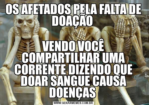 OS AFETADOS PELA FALTA DE DOAÇÃO VENDO VOCÊ COMPARTILHAR UMA CORRENTE DIZENDO QUE DOAR SANGUE CAUSA DOENÇAS