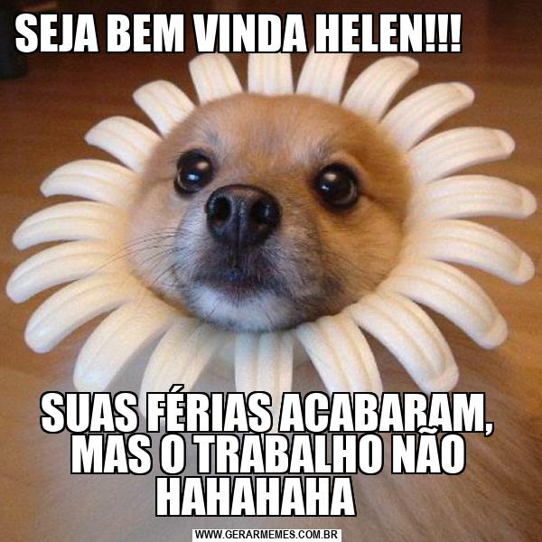 SEJA BEM VINDA HELEN!!! SUAS FÉRIAS ACABARAM, MAS O TRABALHO NÃO HAHAHAHA
