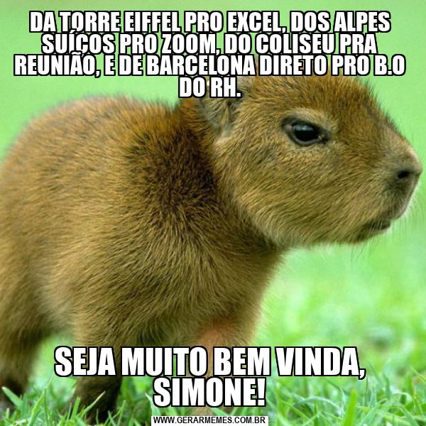 DA TORRE EIFFEL PRO EXCEL, DOS ALPES SUÍÇOS PRO ZOOM, DO COLISEU PRA REUNIÃO, E DE BARCELONA DIRETO PRO B.O DO RH. SEJA MUITO BEM VINDA, SIMONE!