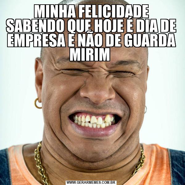 MINHA FELICIDADE SABENDO QUE HOJE É DIA DE EMPRESA E NÃO DE GUARDA MIRIM