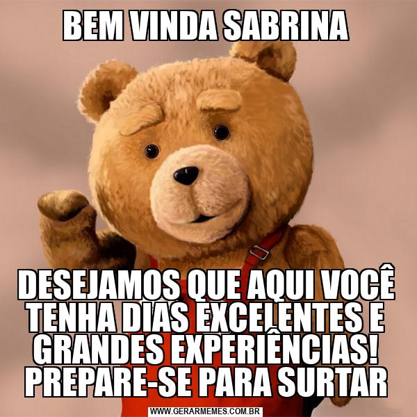 BEM VINDA SABRINA DESEJAMOS QUE AQUI VOCÊ TENHA DIAS EXCELENTES E GRANDES EXPERIÊNCIAS! PREPARE-SE PARA SURTAR