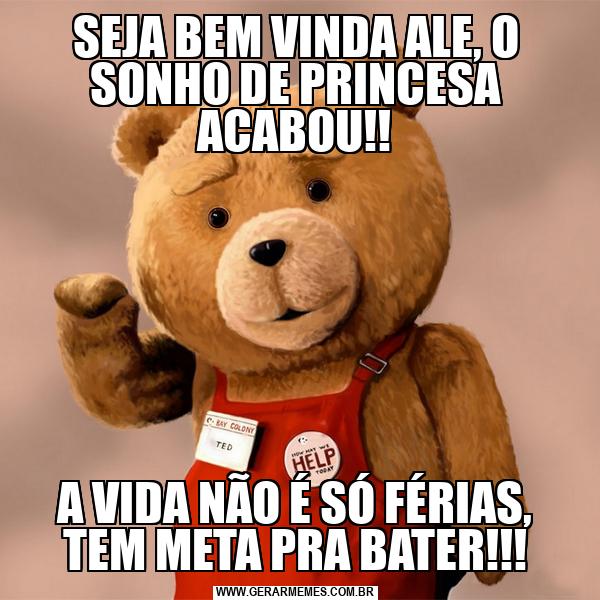 SEJA BEM VINDA ALE, O SONHO DE PRINCESA ACABOU!! A VIDA NÃO É SÓ FÉRIAS, TEM META PRA BATER!!!