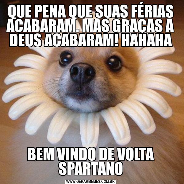 QUE PENA QUE SUAS FÉRIAS ACABARAM. MAS GRAÇAS A DEUS ACABARAM! HAHAHA BEM VINDO DE VOLTA SPARTANO