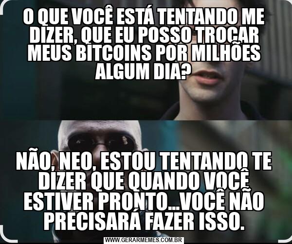 O QUE VOCÊ ESTÁ TENTANDO ME DIZER, QUE EU POSSO TROCAR MEUS BITCOINS POR MILHÕES ALGUM DIA? NÃO, NEO, ESTOU TENTANDO TE DIZER QUE QUANDO VOCÊ ESTIVER PRONTO...VOCÊ NÃO PRECISARÁ FAZER ISSO.