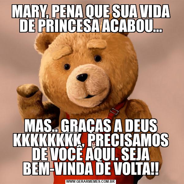 MARY, PENA QUE SUA VIDA DE PRINCESA ACABOU... MAS.. GRAÇAS A DEUS KKKKKKKK, PRECISAMOS DE VOCÊ AQUI. SEJA BEM-VINDA DE VOLTA!!