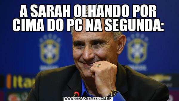 A SARAH OLHANDO POR CIMA DO PC NA SEGUNDA: