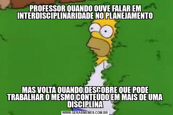 PROFESSOR QUANDO OUVE FALAR EM INTERDISCIPLINARIDADE NO PLANEJAMENTO MAS VOLTA QUANDO DESCOBRE QUE PODE TRABALHAR O MESMO CONTEÚDO EM MAIS DE UMA DISCIPLINA