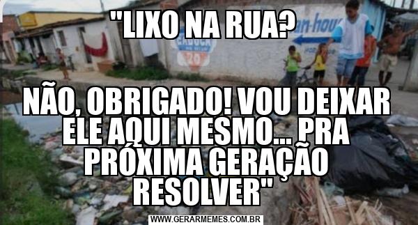 "LIXO NA RUA? NÃO, OBRIGADO! VOU DEIXAR ELE AQUI MESMO... PRA PRÓXIMA GERAÇÃO RESOLVER"
