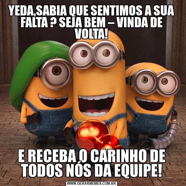 YEDA,SABIA QUE SENTIMOS A SUA FALTA ? SEJA BEM – VINDA DE VOLTA! E RECEBA O CARINHO DE TODOS NÓS DA EQUIPE!