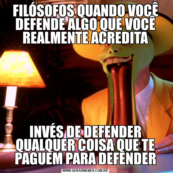 FILÓSOFOS QUANDO VOCÊ DEFENDE ALGO QUE VOCÊ REALMENTE ACREDITA INVÉS DE DEFENDER QUALQUER COISA QUE TE PAGUEM PARA DEFENDER