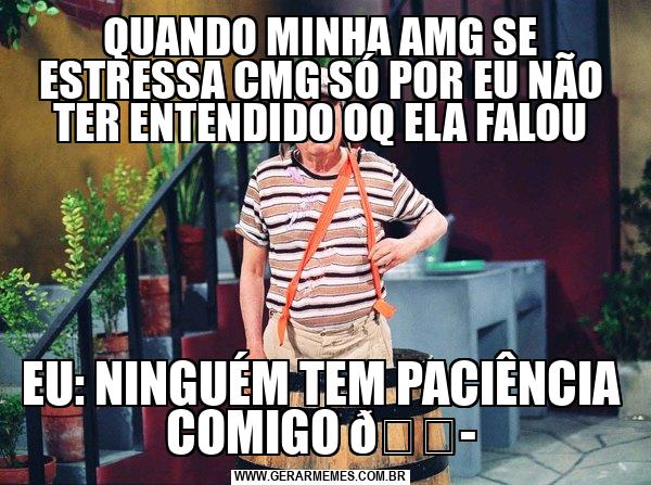 QUANDO MINHA AMG SE ESTRESSA CMG SÓ POR EU NÃO TER ENTENDIDO OQ ELA FALOU EU: NINGUÉM TEM PACIÊNCIA COMIGO