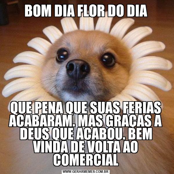 BOM DIA FLOR DO DIA QUE PENA QUE SUAS FERIAS ACABARAM. MAS GRAÇAS A DEUS QUE ACABOU. BEM VINDA DE VOLTA AO COMERCIAL