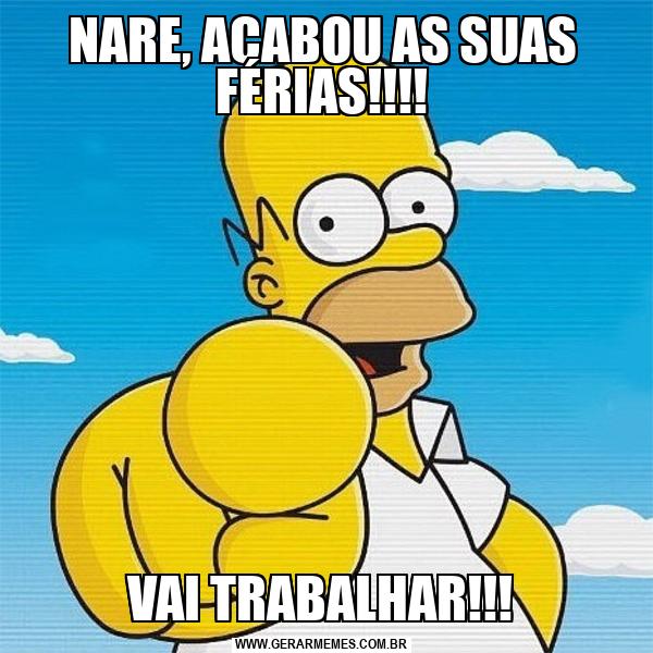 NARE, ACABOU AS SUAS FÉRIAS!!!! VAI TRABALHAR!!!