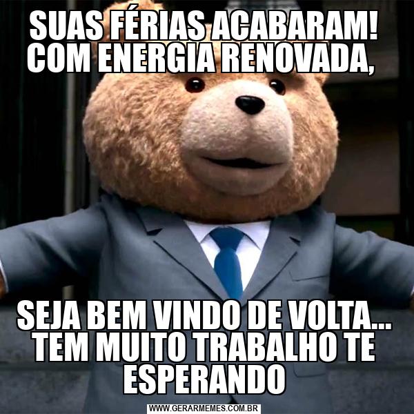SUAS FÉRIAS ACABARAM! COM ENERGIA RENOVADA, SEJA BEM VINDO DE VOLTA... TEM MUITO TRABALHO TE ESPERANDO