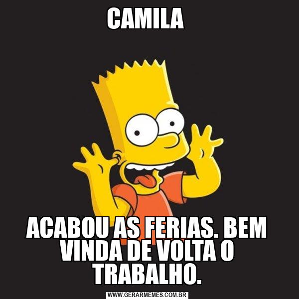CAMILA ACABOU AS FERIAS. BEM VINDA DE VOLTA O TRABALHO.
