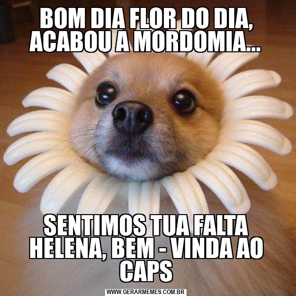 BOM DIA FLOR DO DIA, ACABOU A MORDOMIA... SENTIMOS TUA FALTA HELENA, BEM - VINDA AO CAPS