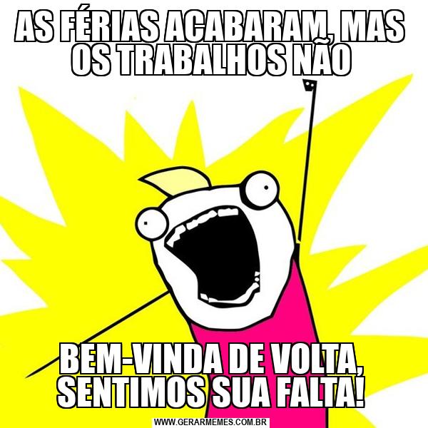 AS FÉRIAS ACABARAM, MAS OS TRABALHOS NÃO BEM-VINDA DE VOLTA, SENTIMOS SUA FALTA!