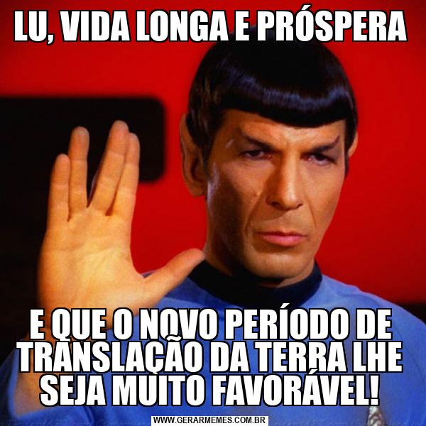LU, VIDA LONGA E PRÓSPERA E QUE O NOVO PERÍODO DE TRANSLAÇÃO DA TERRA LHE SEJA MUITO FAVORÁVEL!