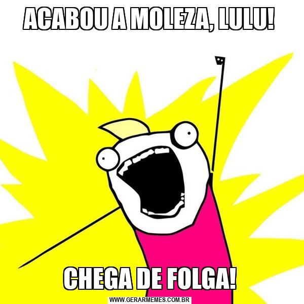ACABOU A MOLEZA, LULU! CHEGA DE FOLGA!