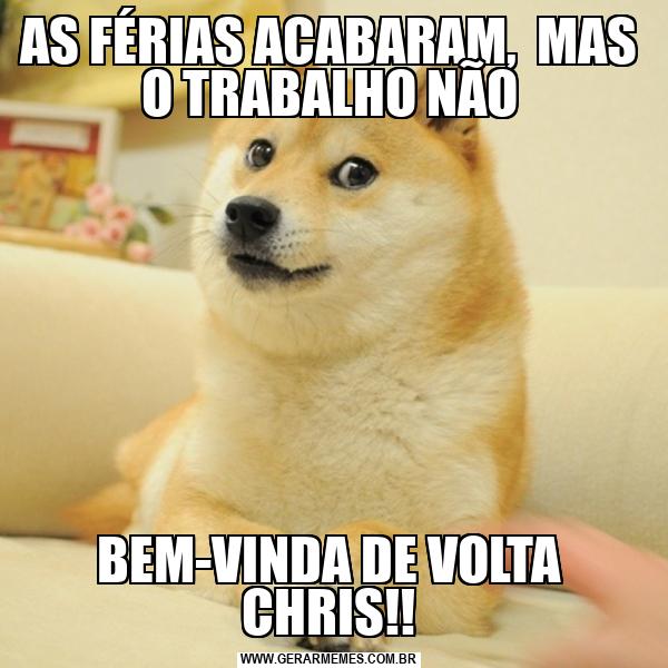 AS FÉRIAS ACABARAM, MAS O TRABALHO NÃO BEM-VINDA DE VOLTA CHRIS!!