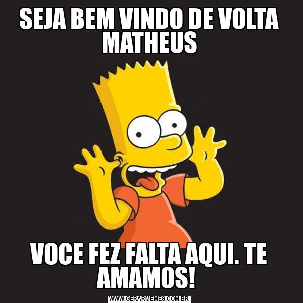 SEJA BEM VINDO DE VOLTA MATHEUS VOCE FEZ FALTA AQUI. TE AMAMOS!