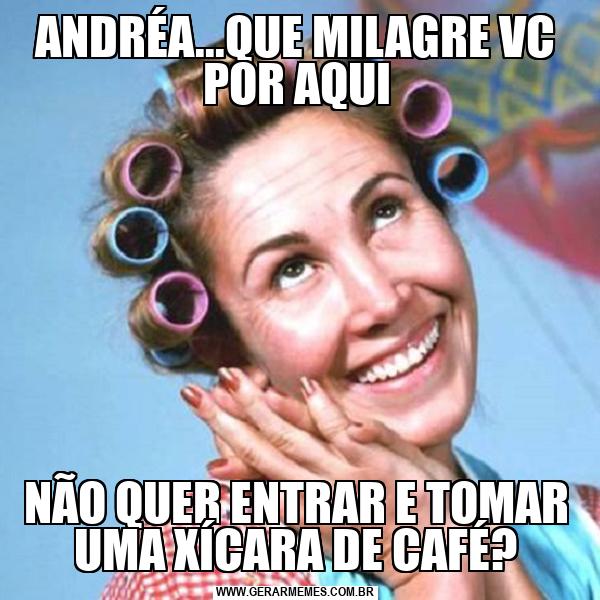 ANDRÉA...QUE MILAGRE VC POR AQUI NÃO QUER ENTRAR E TOMAR UMA XÍCARA DE CAFÉ?