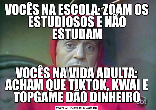 VOCÊS NA ESCOLA: ZOAM OS ESTUDIOSOS E NÃO ESTUDAM VOCÊS NA VIDA ADULTA: ACHAM QUE TIKTOK, KWAI E TOPGAME DÃO DINHEIRO