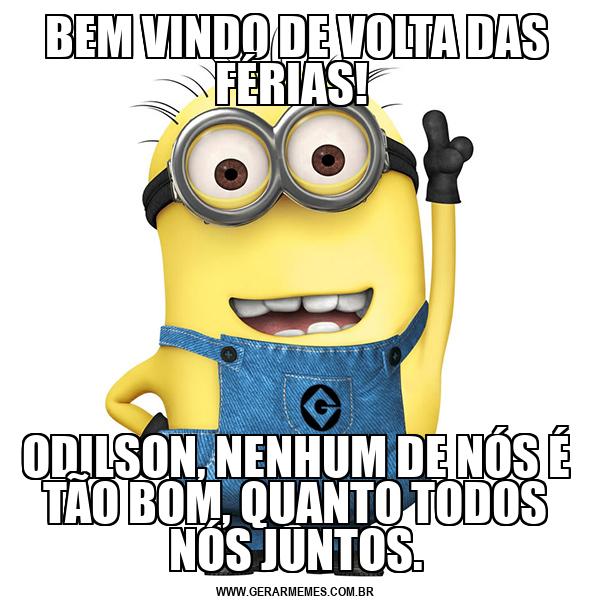BEM VINDO DE VOLTA DAS FÉRIAS! ODILSON, NENHUM DE NÓS É TÃO BOM, QUANTO TODOS NÓS JUNTOS.