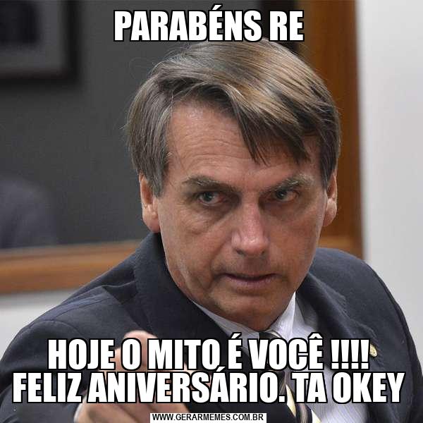PARABÉNS RE HOJE O MITO É VOCÊ !!!! FELIZ ANIVERSÁRIO. TA OKEY