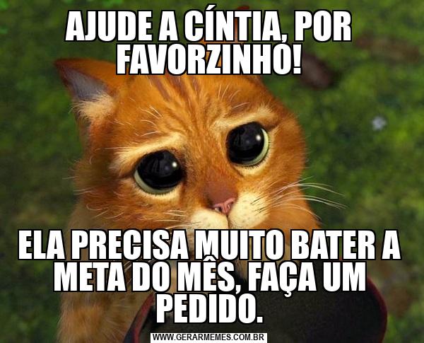 AJUDE A CÍNTIA, POR FAVORZINHO! ELA PRECISA MUITO BATER A META DO MÊS, FAÇA UM PEDIDO.
